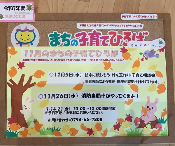 日程は亀鶴こども園のホームページや、小野市社会福祉協議会のホームページに記載していますのでご覧ください。